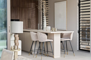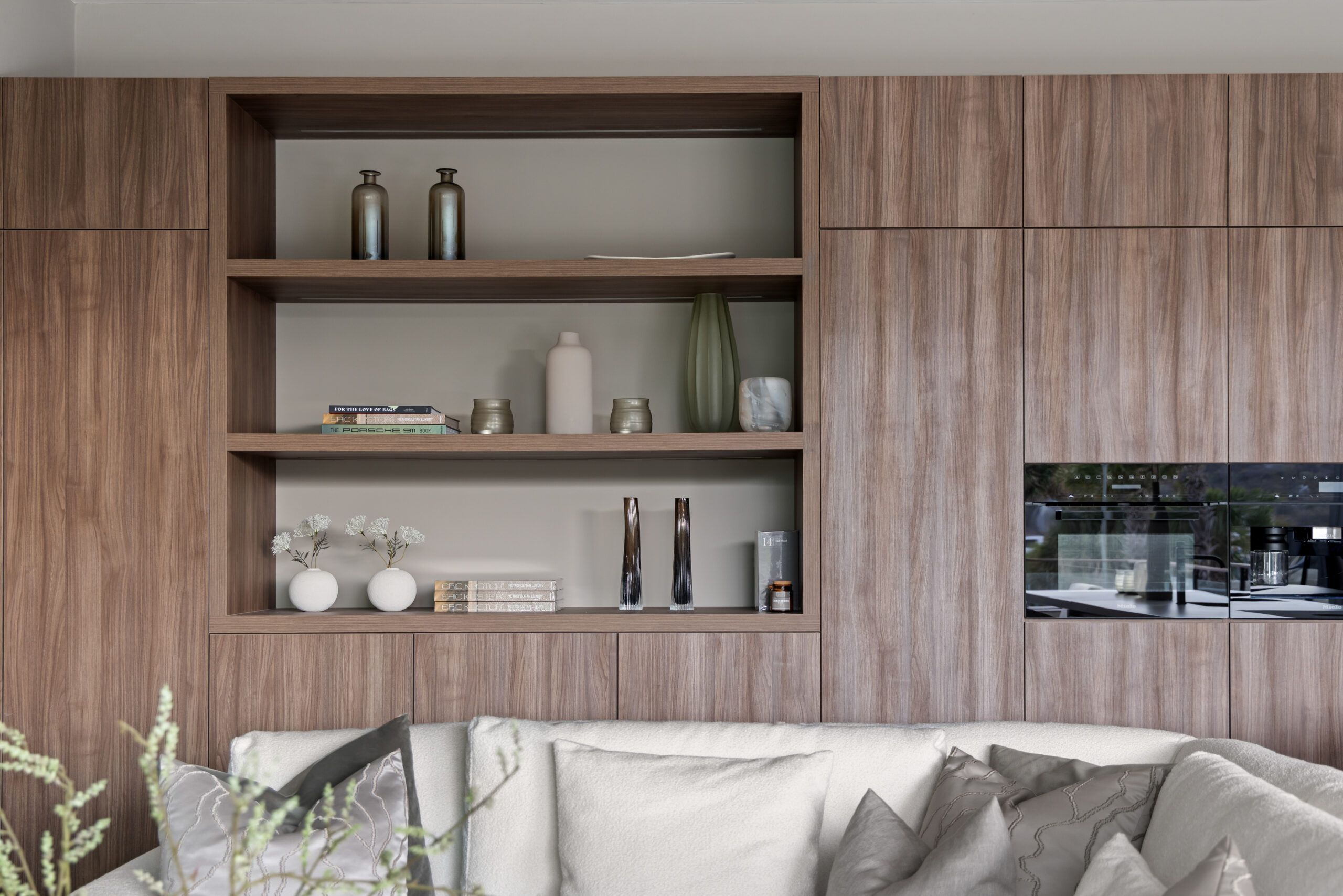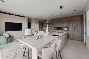 Stijlvolle open keuken met kookeiland en luxe inbouwapparatuur