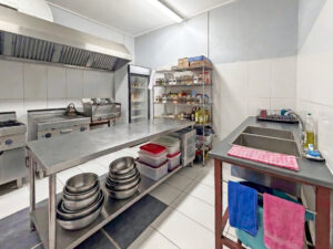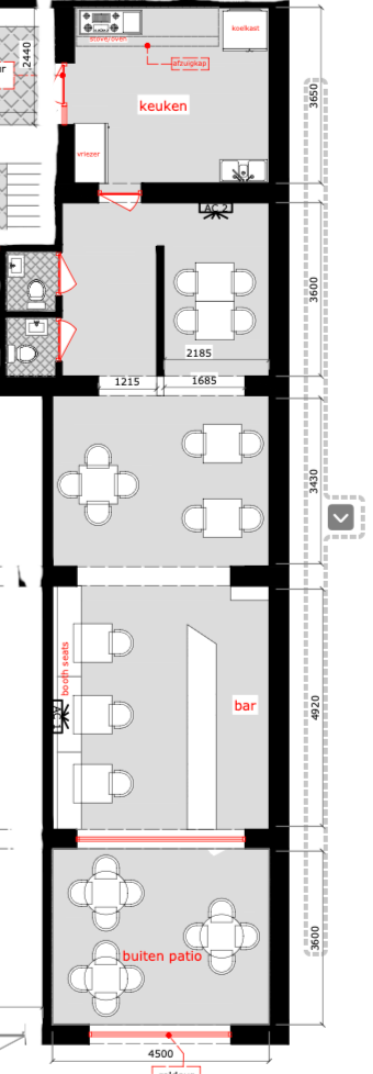 De totale oppervlakte van 90 m² is praktisch verdeeld over het gastengedeelte en de operationele ruimtes. De aanwezigheid van een complete bar en een volledig ingerichte keuken maakt het pand direct inzetbaar voor diverse horeca-activiteiten. De indeling is verder flexibel, wat u de vrijheid geeft de zaak naar eigen inzicht en concept in te richten. Daarnaast beschikt het pand over gescheiden sanitaire voorzieningen voor dames en heren, beide uitgerust met een fontein.