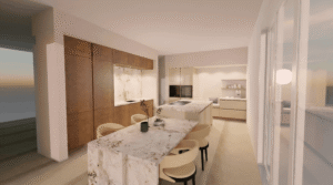 Het penthouse wordt hoogwaardig en stijlvol afgewerkt en beschikt over een royale living met veel lichtinval, een moderne open keuken met luxe apparatuur en verfijnde materialen. De drie royale slaapkamers maken gebruik van twee stijlvol afgewerkte badkamers, wat zorgt voor een comfortabele en luxe woonervaring voor bewoners en gasten.