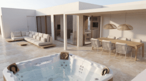 - Groot terras met jacuzzi en palapa